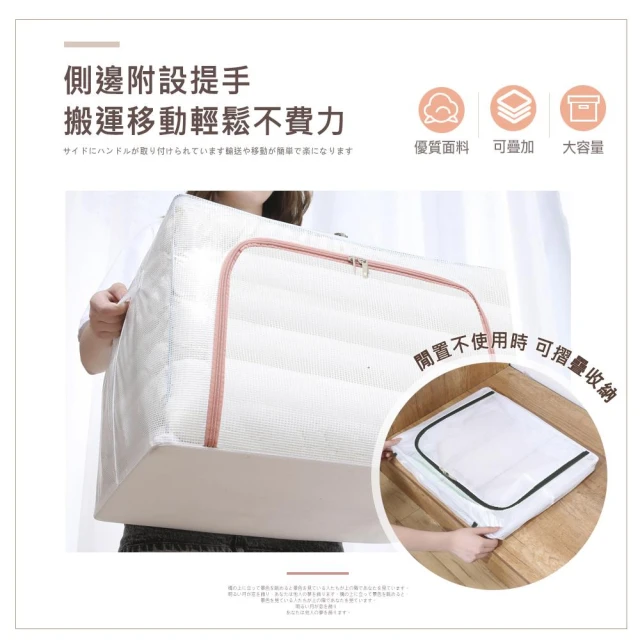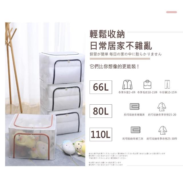 LEBON4入/PVC雙開口66L鋼架收納箱 透明收納箱 衣物收納箱 棉被收納 摺疊收納箱 整理箱
