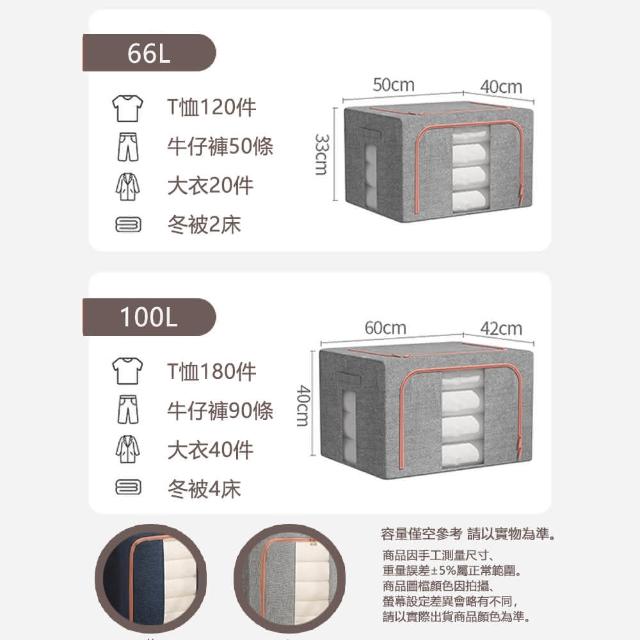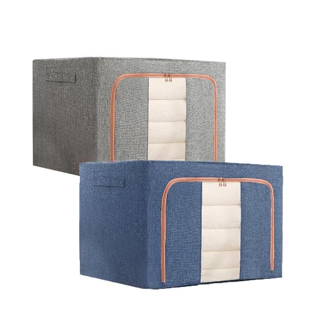 LEBON2入/棉麻雙開鋼架收納箱摺疊收納箱 衣服整理 衣物收納 衣物整理 收納整理箱 折疊箱
