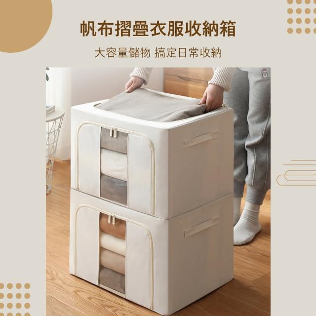 LEBON10入/100L帆布雙開鋼架衣服收納箱摺疊收納箱 衣服整理 衣物整理 整理箱 衣物收納箱 衣櫥收納
