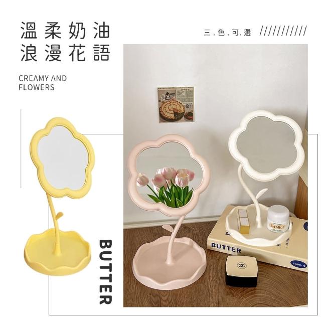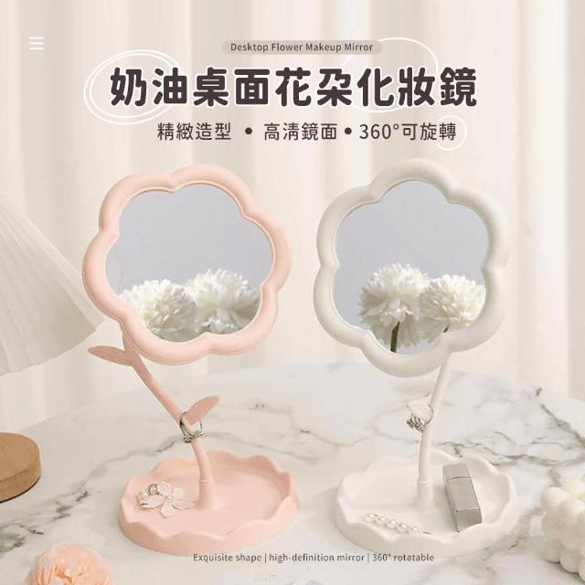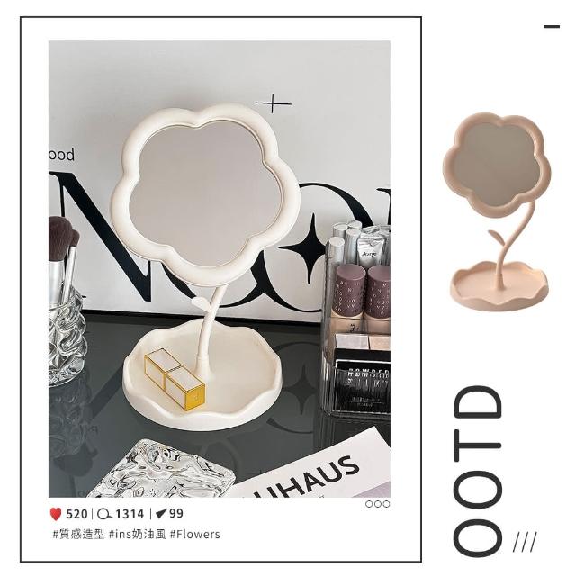 LEBON花朵造型化妝鏡桌面 飾品 收納 旋轉鏡