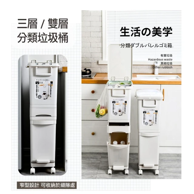 LEBON32L三層-分類垃圾桶腳踏垃圾桶 夾縫垃圾桶 手提桶
