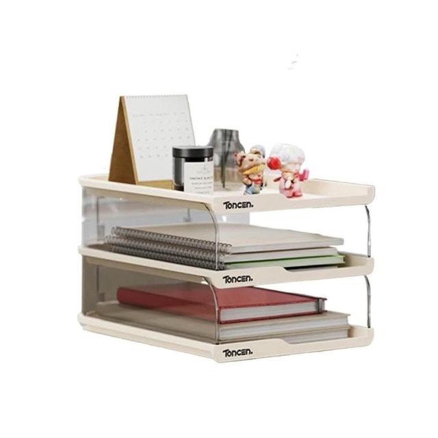 LEBON三層文件收納盒-多層A4資料分類架 辦公桌面抽屜式整理盒