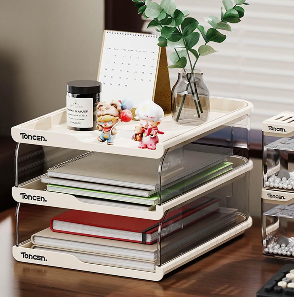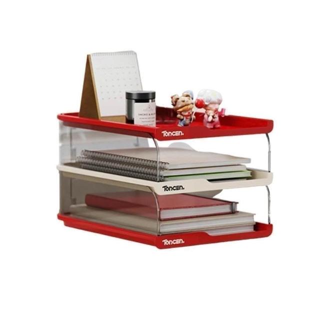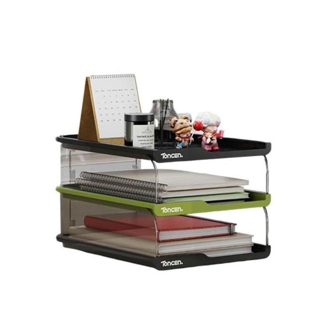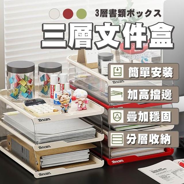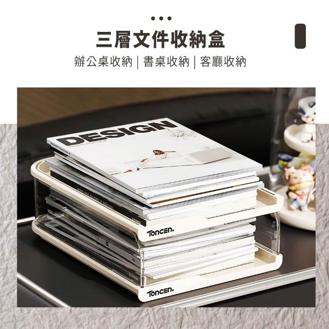 LEBON三層文件收納盒-多層A4資料分類架 辦公桌面抽屜式整理盒