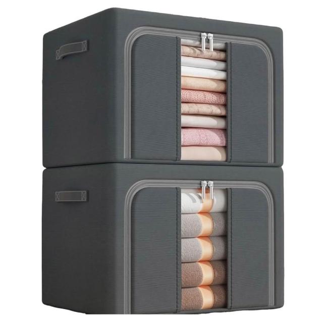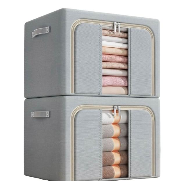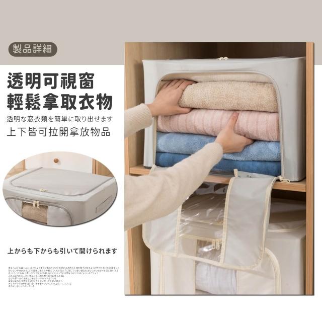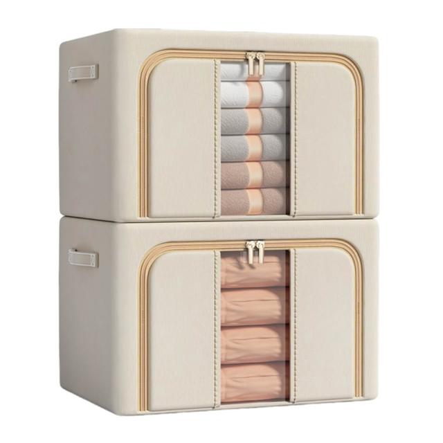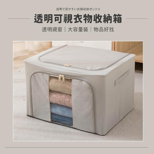 LEBON可疊加鋼架收納箱 牛津布衣物棉被整理箱 鋼骨加厚耐重/摺疊透明防潮防塵 樂邦