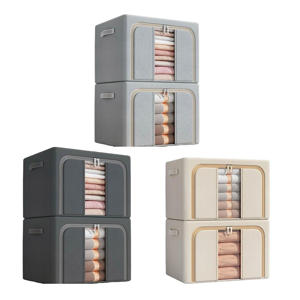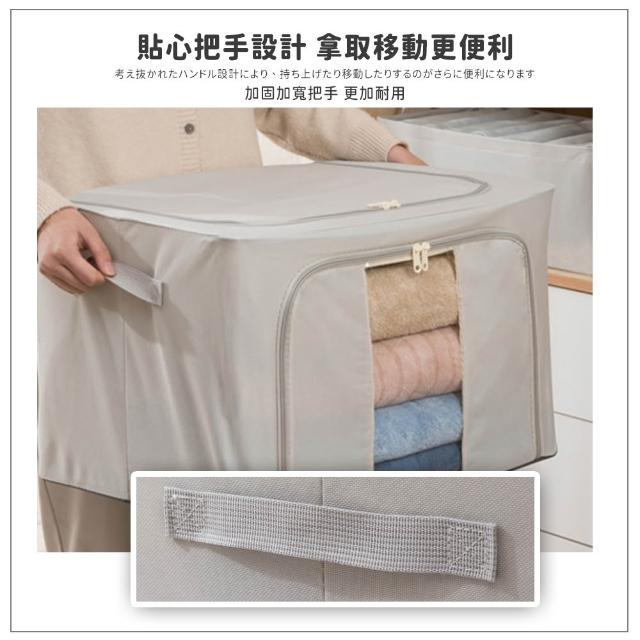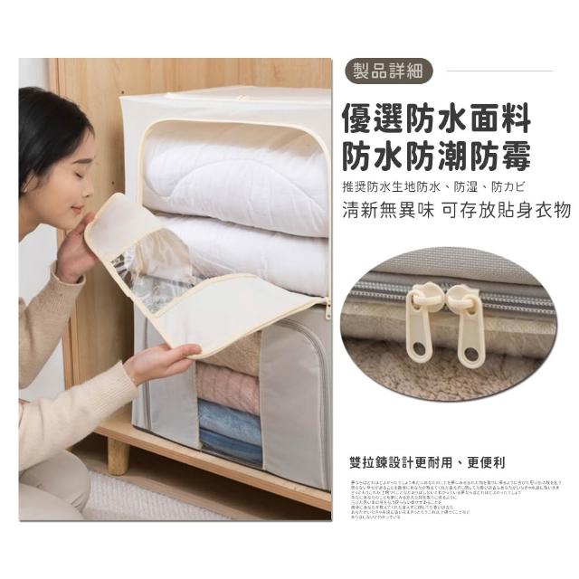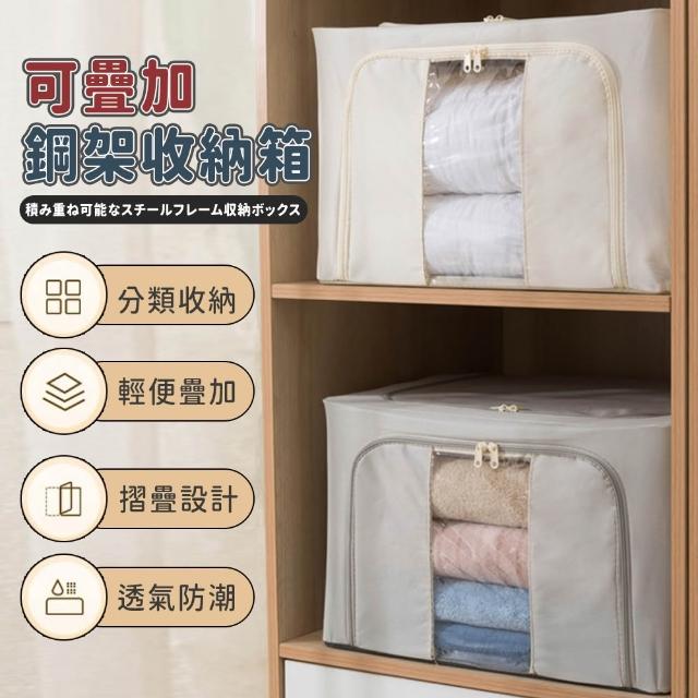 LEBON可疊加鋼架收納箱 牛津布衣物棉被整理箱 鋼骨加厚耐重/摺疊透明防潮防塵 樂邦