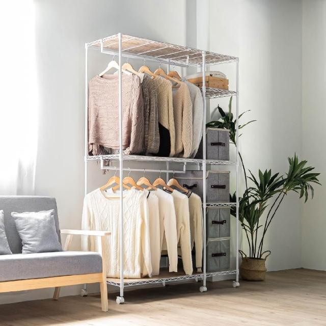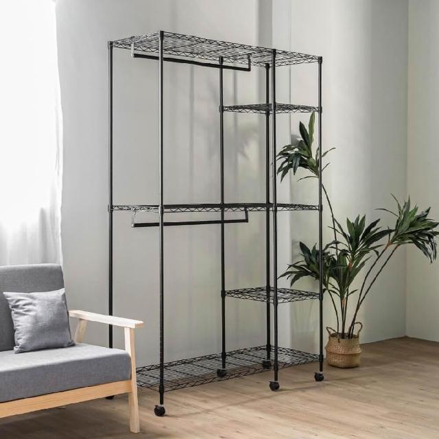 Steel Tycoon 鋼鐵力士【限時送收納箱】五層雙桿衣櫥架 附布套+靜音輪 45x122x180cm衣櫃.掛衣架.吊衣架.烤漆.鐵架.層架.鐵力士架
