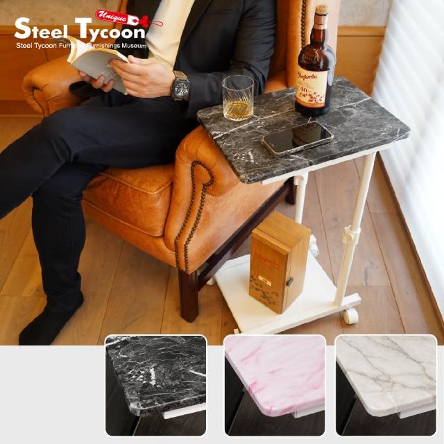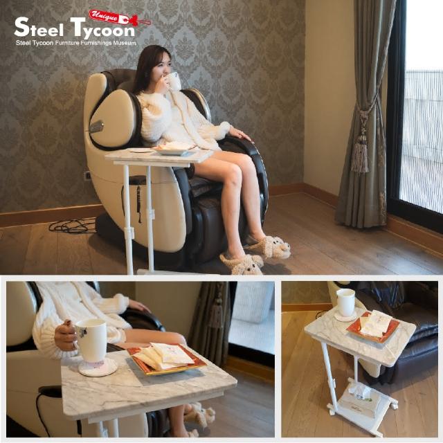 Steel Tycoon 鋼鐵力士大理石紋邊桌 可升降52-75cm 附輪懶人桌 床邊桌 電腦桌 小餐桌 沙發邊桌 置物桌 筆電桌