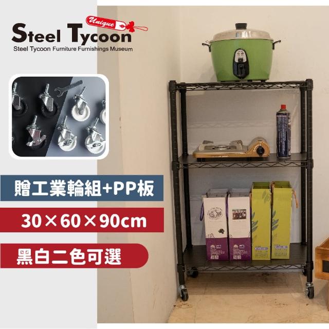 Steel Tycoon 鋼鐵力士三層置物架 30x60x90cm 附調整腳+工業輪+墊板鐵架.層架.鐵力士架.置物櫃.收納架.貨架