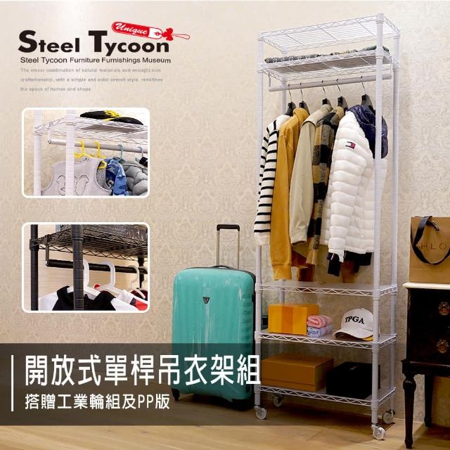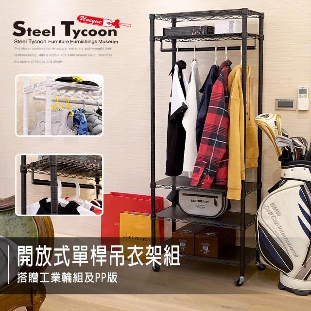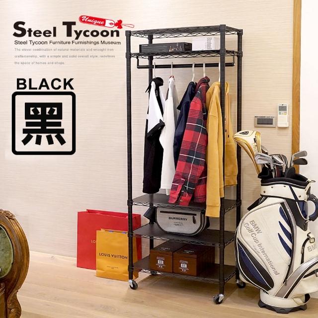 Steel Tycoon 鋼鐵力士五層開放式衣櫥架 附墊板+輪 30x60x180cm3色.衣櫃.掛衣架.吊衣架.烤漆.鐵架.層架.鐵力士架