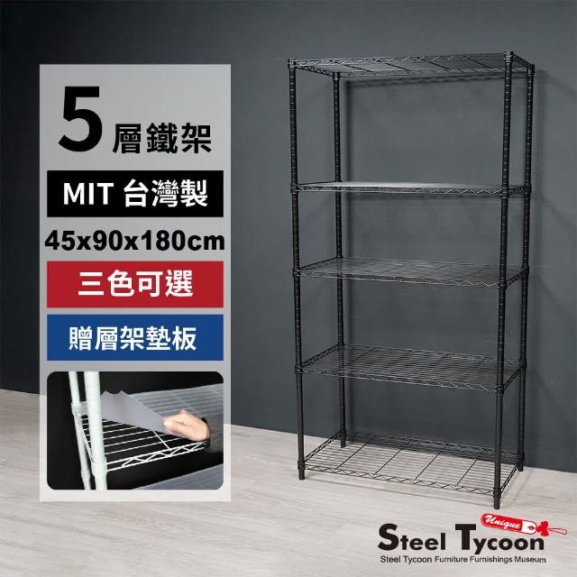 Steel Tycoon 鋼鐵力士五層置物架 45x90x180cm 附層架墊板 黑/白/銀鐵架.層架.鐵力士架.置物櫃.收納架