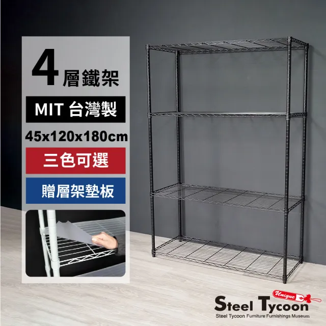 Steel Tycoon 鋼鐵力士四層置物架 45x120x180cm 附層架墊板 黑/白/銀鐵架.層架.鐵力士架.置物櫃.收納架