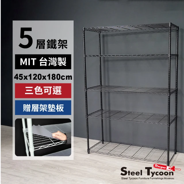 Steel Tycoon 鋼鐵力士五層置物架 45x120x180cm 附層架墊板 黑/白/銀鐵架.層架.鐵力士架.置物櫃.收納架
