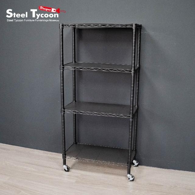 Steel Tycoon 鋼鐵力士四層木板置物架 30x60x120cm 附工業輪+木層板鐵架.層架.鐵力士架.收納架.貨架