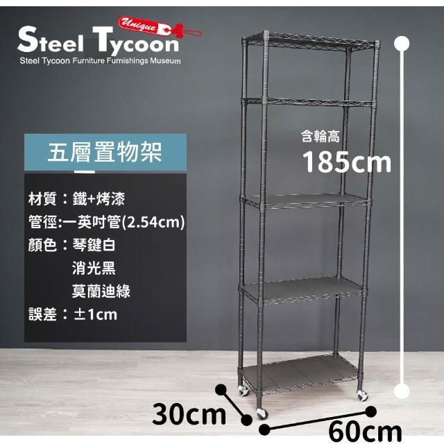 Steel Tycoon 鋼鐵力士五層木板置物架 30x60x180cm 附工業輪+木層板鐵架.層架.鐵力士架.收納架.貨架