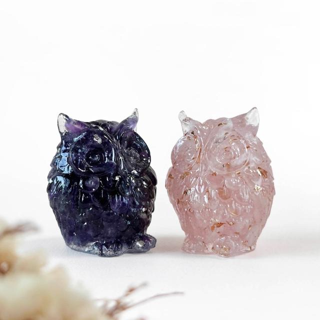 Dawn Fashion 彤恩時尚天然水晶 紫水晶 貓頭鷹 // 原礦碎石 手作水晶擺件/風水擺設/畢業禮物