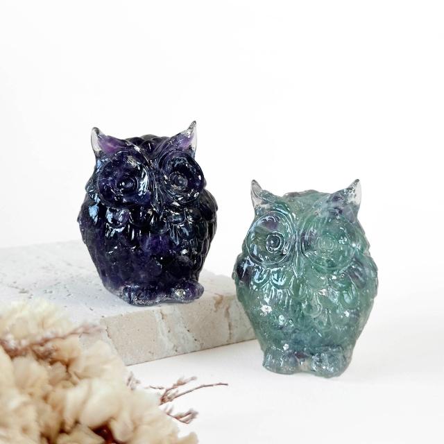 Dawn Fashion 彤恩時尚天然水晶 紫水晶 貓頭鷹 // 原礦碎石 手作水晶擺件/風水擺設/畢業禮物