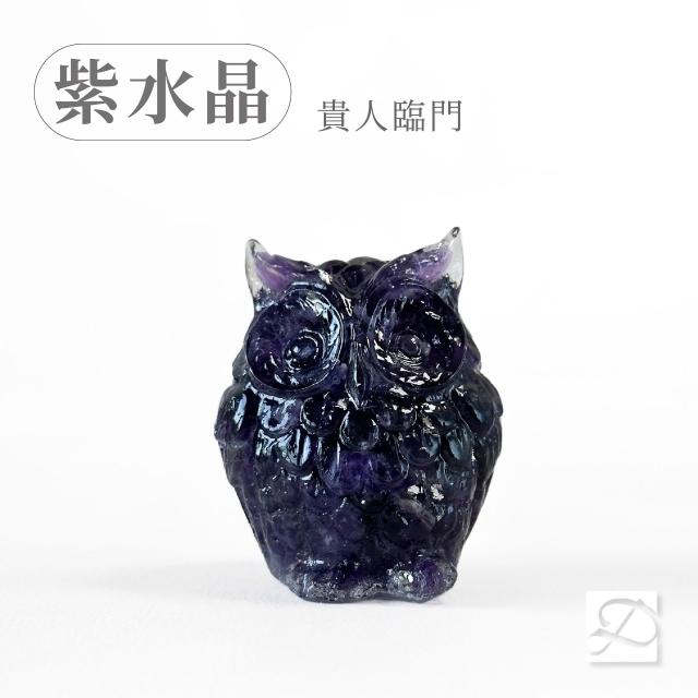 Dawn Fashion 彤恩時尚天然水晶 紫水晶 貓頭鷹 // 原礦碎石 手作水晶擺件/風水擺設/畢業禮物