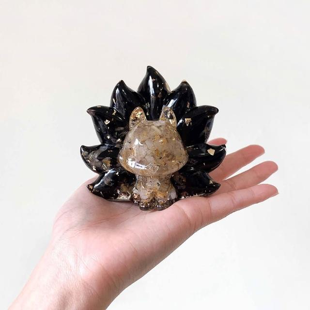 Dawn Fashion 彤恩時尚天然水晶狐仙《招財 開運》黑曜石九尾狐//碎石手作/風水擺設/畢業禮物