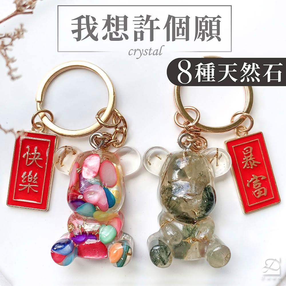 Dawn Fashion 彤恩時尚水晶熊 鑰匙圈 XS號//原礦碎石 白水晶 黃水晶 黑曜石 彩碧璽/風水擺設/畢業禮物