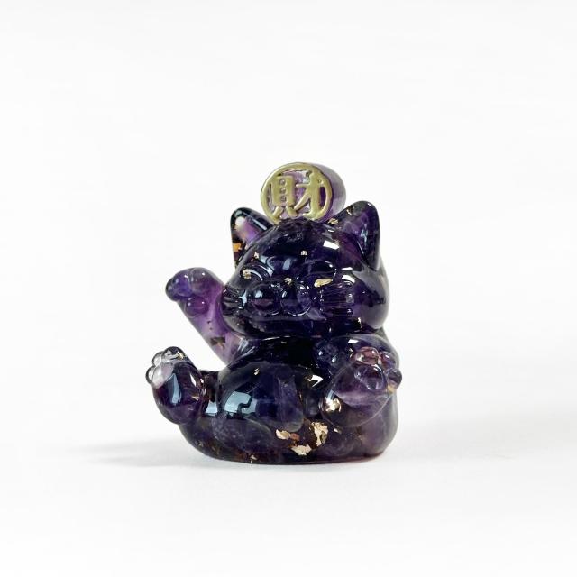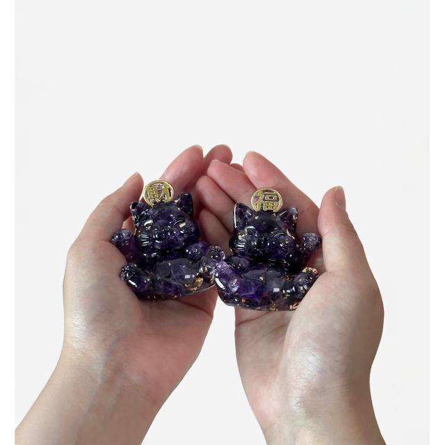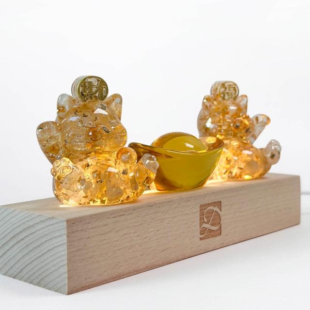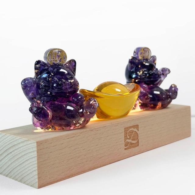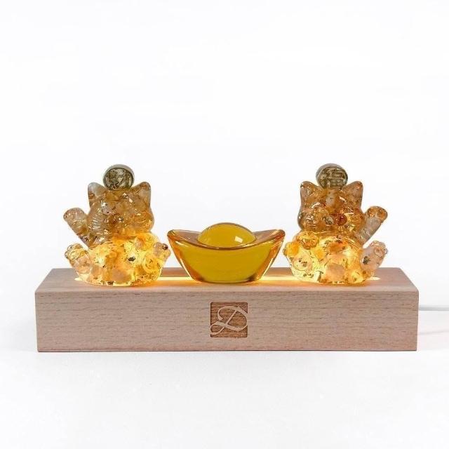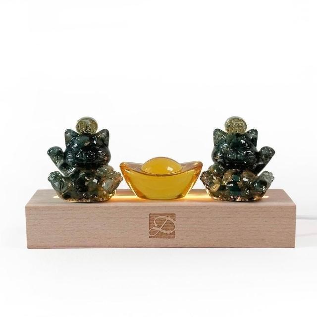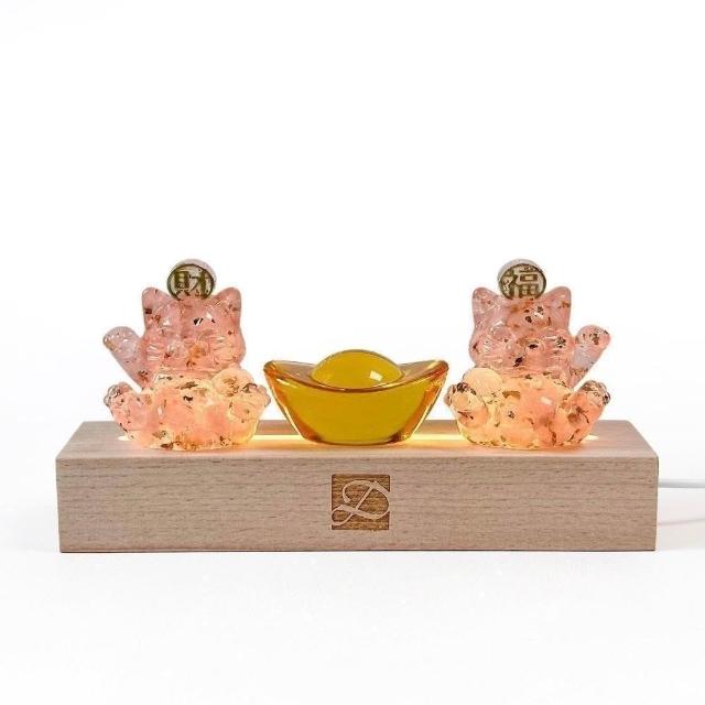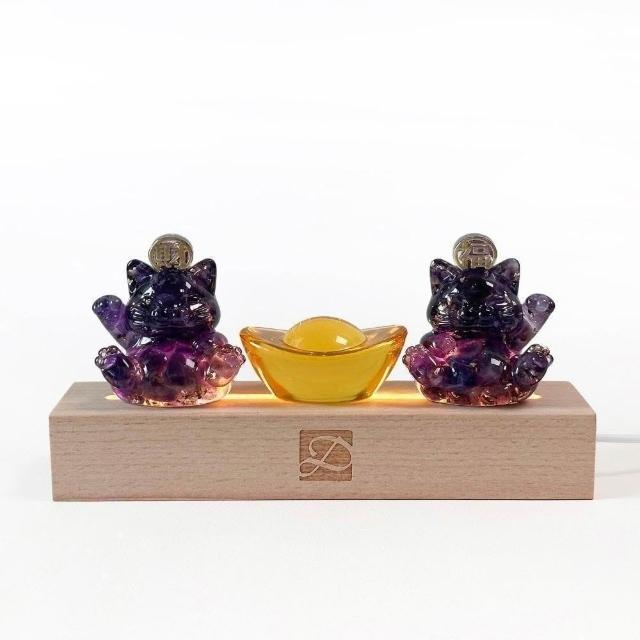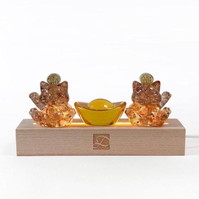Dawn Fashion 彤恩時尚天然水晶 招財 開運 旺福貓+旺財貓元寶燈座組 // 原礦碎石 手作水晶擺件/中秋節禮物
