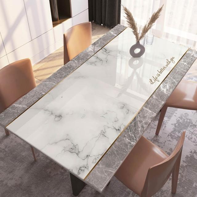 E-Pin 逸品生活北歐大理石紋軟玻璃桌墊80x140cm(防水/防污/防燙/不縮邊/桌布/桌墊/餐桌墊/桌巾)