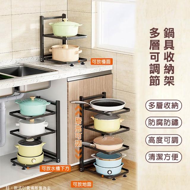 E-Pin 逸品生活3層可調節鍋架收納架(廚房置物架/水槽下/櫥櫃收納/配菜架/鍋具收納)