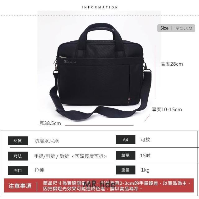 質感全尼龍款公事包 15吋筆電可放 防潑水材質 側背/手提兩用款 公事包 手提包 筆電包 1861 Mr.tide
