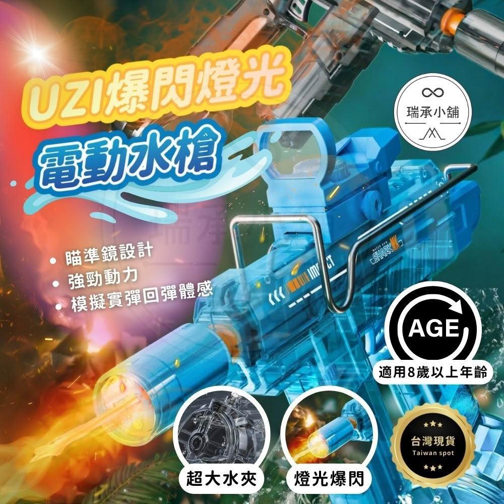 UZI爆閃燈光電動水槍 玩具 自動水槍 兒童 潑水節水槍 大容量 電動連發水槍 冰爆水槍 充電 兒童禮物