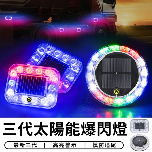 STAR CANDY太陽能爆閃燈-圓形款(太陽能LED燈 警示燈 附強力磁鐵 貨車警示燈 邊燈 後尾燈 側燈 汽車貨車)