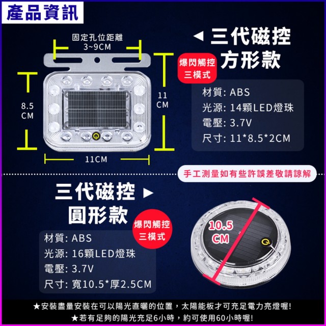 STAR CANDY太陽能爆閃燈-圓形款(太陽能LED燈 警示燈 附強力磁鐵 貨車警示燈 邊燈 後尾燈 側燈 汽車貨車)