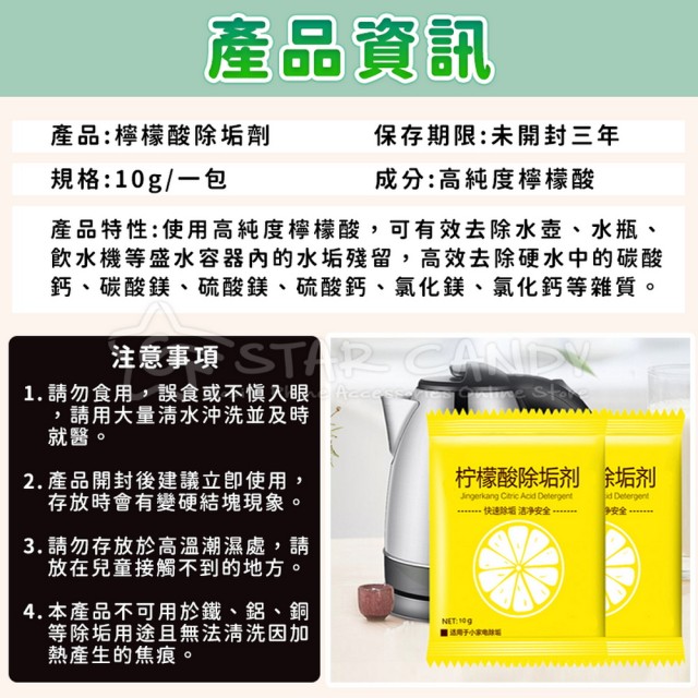 STAR CANDY檸檬酸除垢劑(水垢清除劑 水垢清潔劑 茶垢清潔 檸檬酸 電水壺除垢劑 飲水機清潔劑 除茶垢 清潔劑)