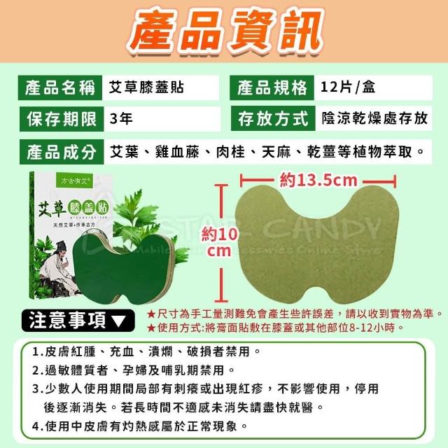STAR CANDY艾草膝蓋貼 一盒12片(艾草肩膀貼 艾草貼 膝蓋貼 艾草足貼 生薑貼 肩周貼 發熱貼 艾灸貼 腰椎貼)