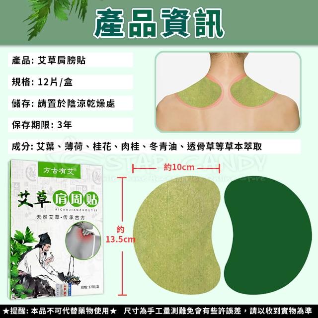 STAR CANDY艾草肩膀貼 一盒12片(艾草肩膀貼 艾草貼 膝蓋貼 艾草足貼 生薑貼 肩周貼 發熱貼 艾灸貼 腰椎貼)