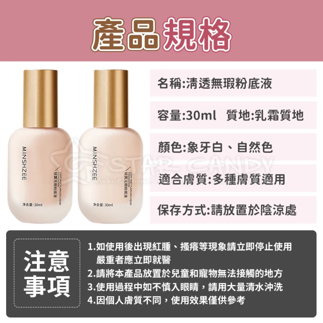 STAR CANDY清透無暇粉底液(遮瑕粉底液 控油粉底液 淡化痘印 粉底液 粉底 粉餅 底妝 不脫妝粉底 美妝 化妝)