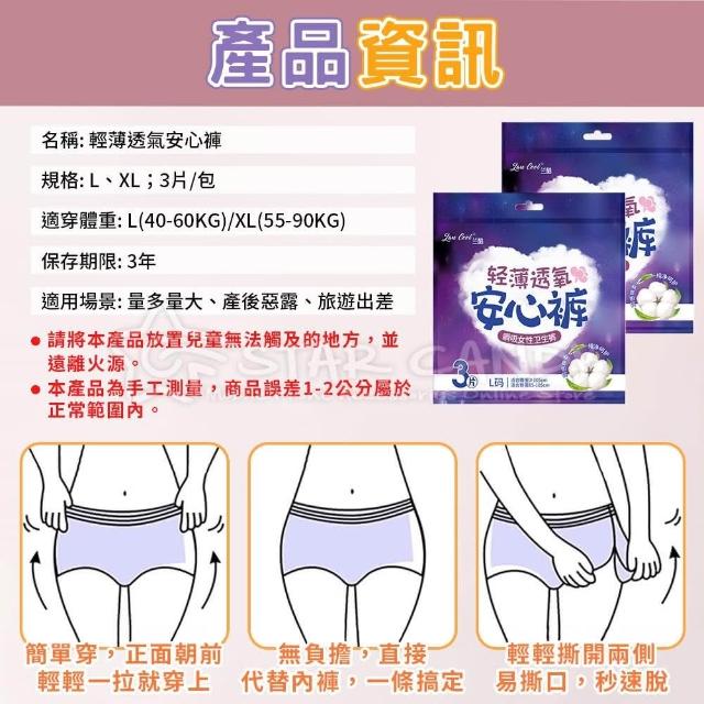 STAR CANDY輕薄透氣安心褲1包3入(生理褲 安心褲 安睡褲 好眠褲 熟睡褲 衛生棉褲 晚安褲 衛生棉)