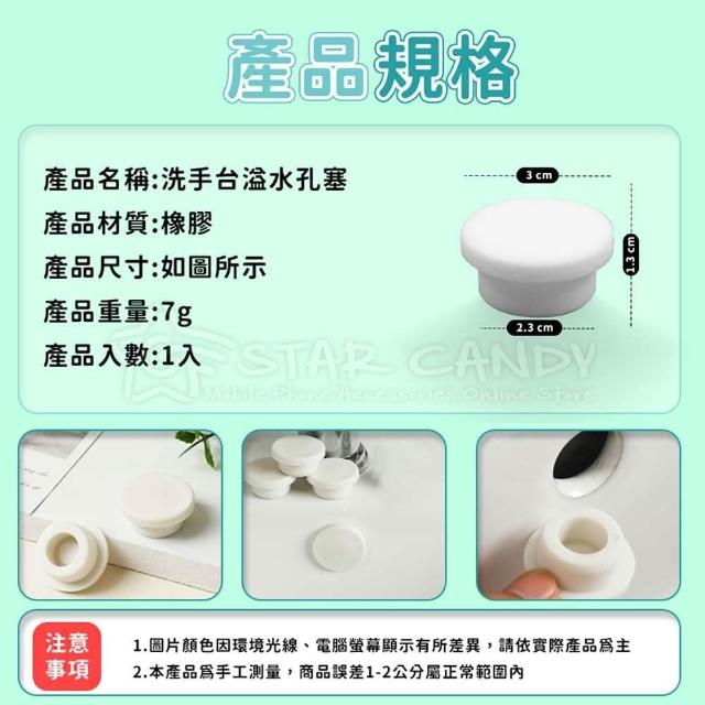 STAR CANDY洗手台溢水孔塞 洗臉盆橡膠塞 洗手台橡膠塞 防水密封塞 溢流孔蓋 排水孔塞 止水塞 水槽塞