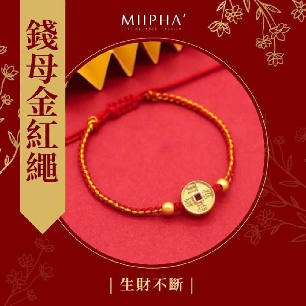 MIIPHA 開運紅繩手鍊|招財錢母(錢母 生財 招財 補財庫 開運 避邪 轉運 安太歲 保平安 擋小人 貴人 桃花 淨化磁場 五色線 手作 疊戴 設計 質感 手環 超人氣 輕珠寶)