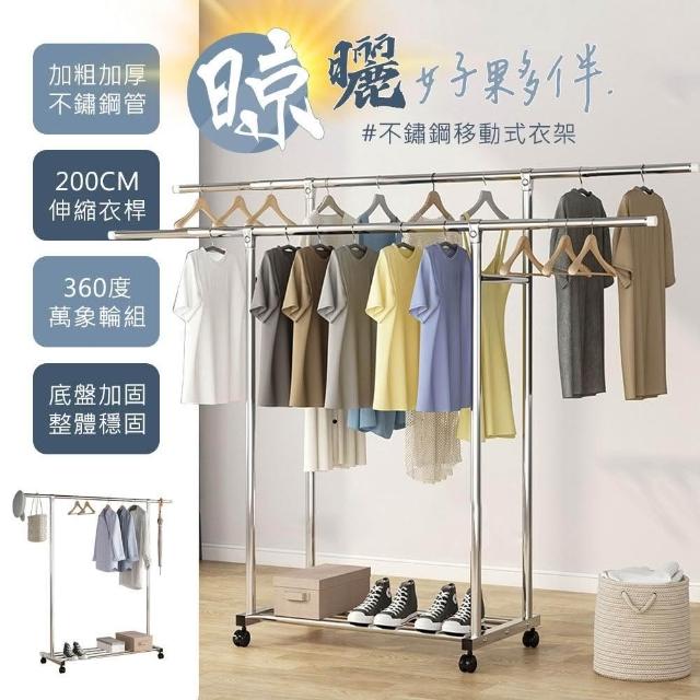 品樂生活不鏽鋼移動式曬衣架/吊衣架/單桿衣架/雙桿衣架/掛衣架/簡約衣架/抗鏽衣架/伸縮衣架