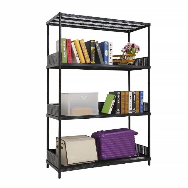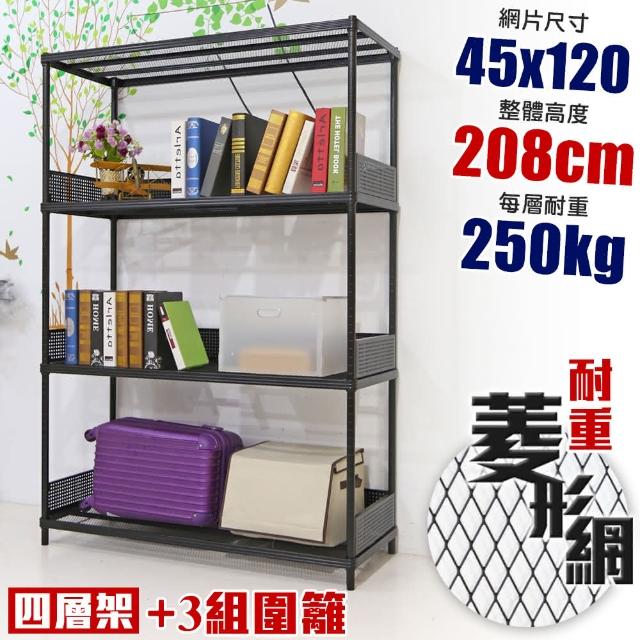 品樂生活荷重補強 45X120X208CM菱形網圍籬款四層架(烤漆霧黑/一寸粗管/置物架/波浪架/收納架/鐵架)