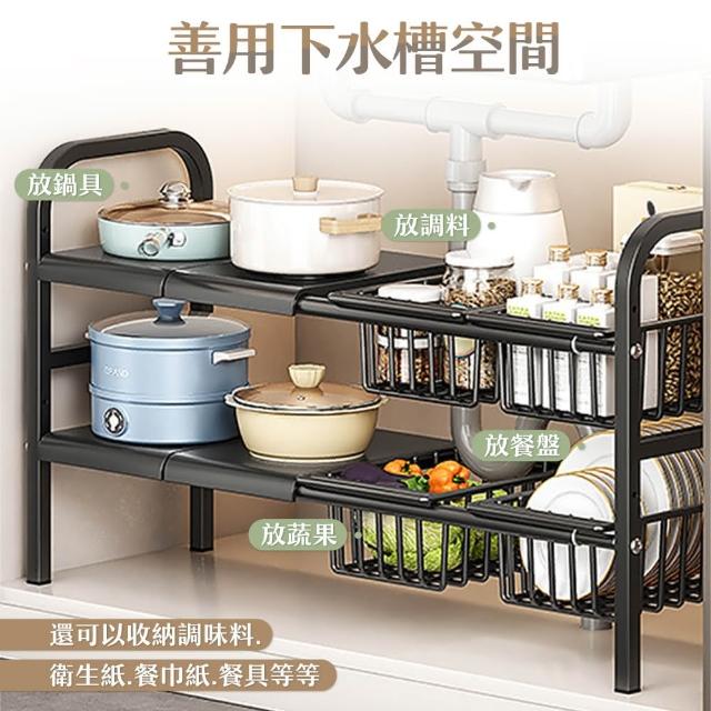 品樂生活可調式下水槽伸縮置物架(流理臺置物架/廚房收納架/伸縮置物架/洗手台架/伸縮架)