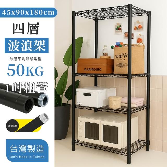 品樂生活MIT耐重型四層置物架45X90X180cm 烤漆黑 鐵架 層架 收納架 鐵力士架 電器櫃 櫃子