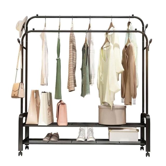 品樂生活加寬150CM大容量雙桿雙層移動式加粗衣架HA15059-BK(吊衣架/曬衣架/移動式衣架/帶輪衣架組)