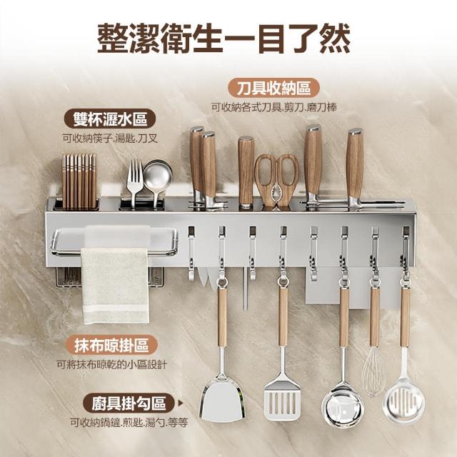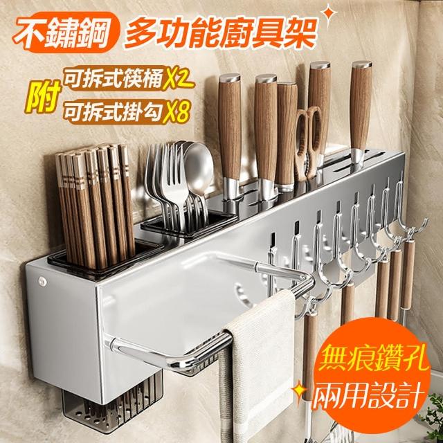 品樂生活無痕兩用不鏽鋼多功能廚具架 TD506-STL(附筷桶X2+掛勾X8 刀具架 筷架 廚房架 餐具架)