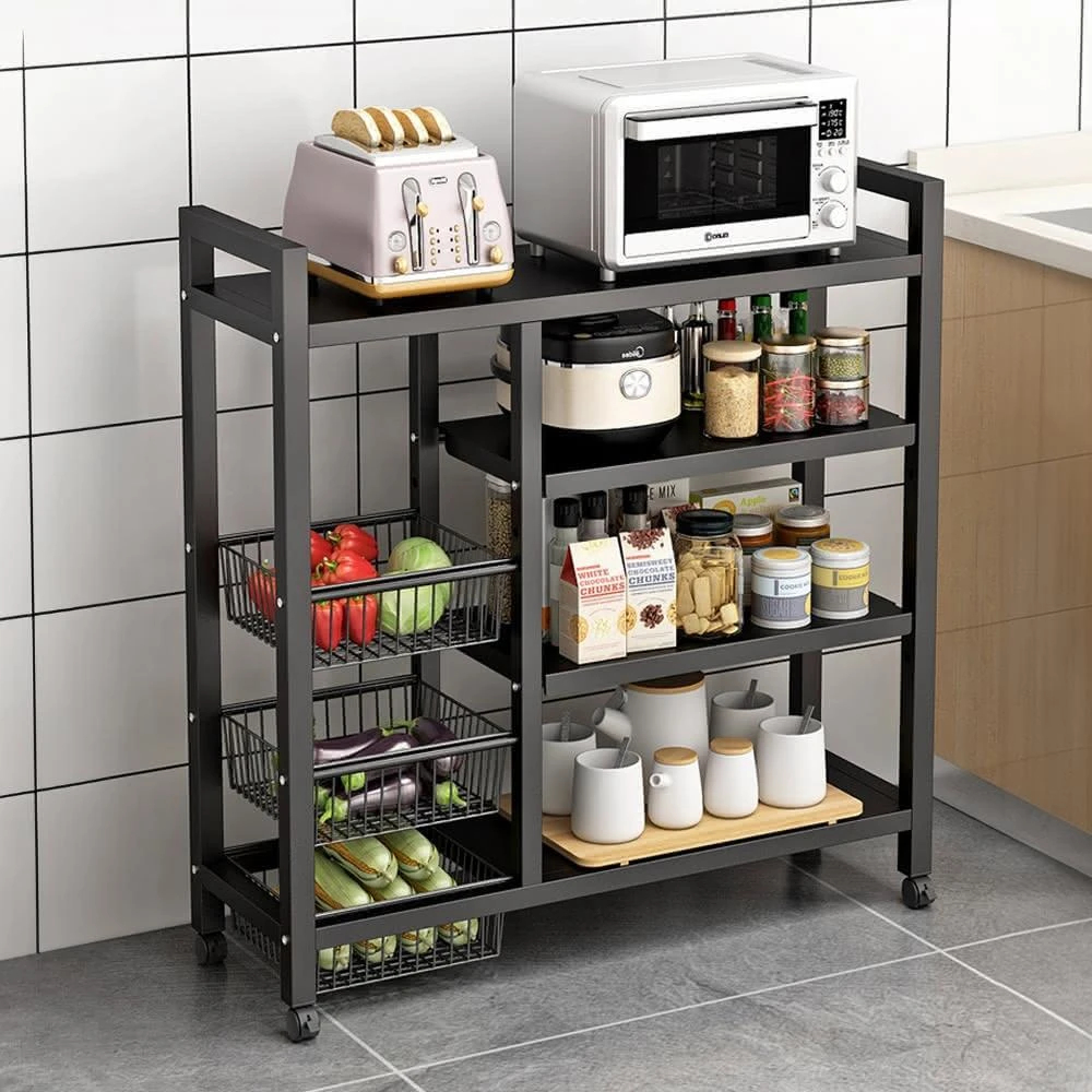 品樂生活四板三籃KC電器置物架KC8032-4BK(推車/廚房架/書架/玩具架/置物架/收納架/鐵架/層架/鐵架)