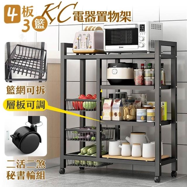 品樂生活四板三籃KC電器置物架KC8032-4BK(推車/廚房架/書架/玩具架/置物架/收納架/鐵架/層架/鐵架)