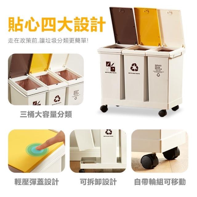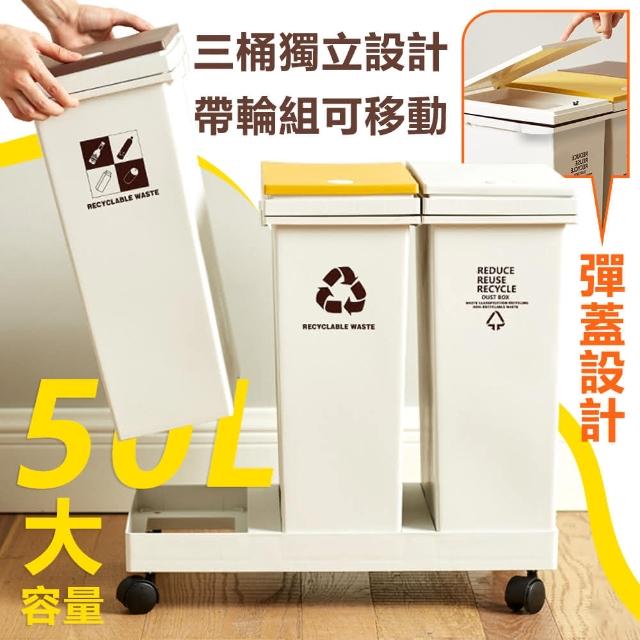 品樂生活50L帶輪彈蓋分類垃圾桶TG5734-3WT(可拆垃圾桶/資源回收桶/廚餘桶/乾溼分離垃圾桶/一般垃圾桶)
