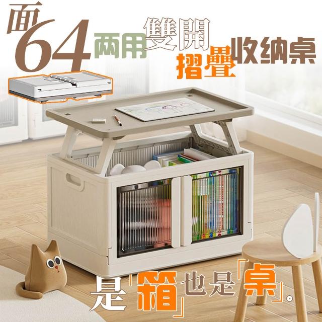 品樂生活面64兩用雙開折疊收納桌奶白灰 HE6040-2 收納箱 摺疊桌 塑膠收納箱 露營收納箱 玩具箱