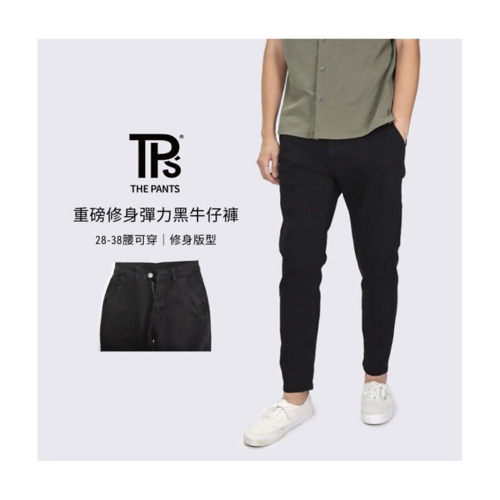 THE PANTS 有件褲子重磅修身彈力黑牛仔褲修身版型 修身 上寬下窄 素色牛仔 街頭牛仔