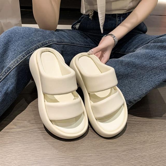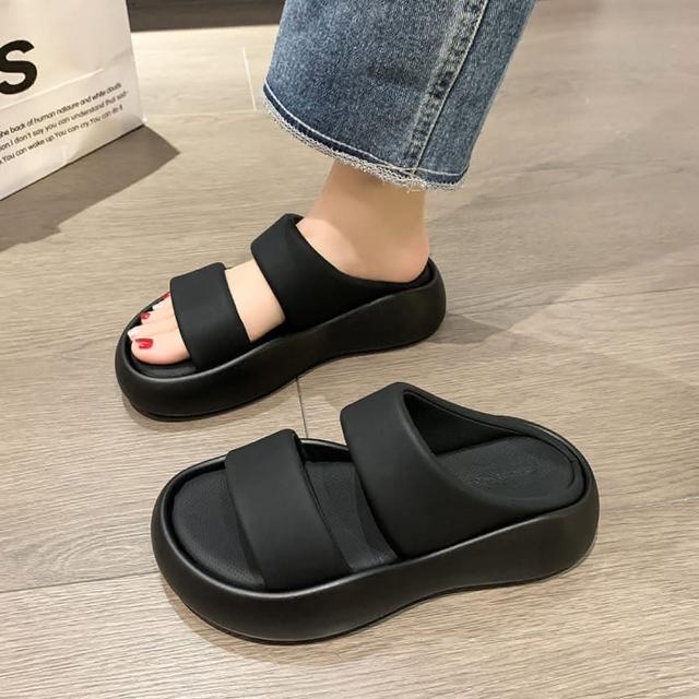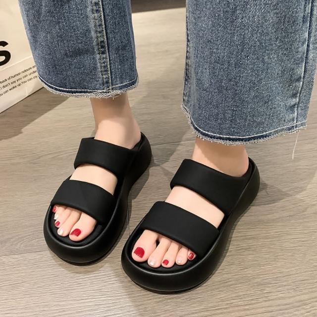 baibeauty 白鳥麗子韓風極簡素面一字雙帶厚底拖鞋厚底鞋