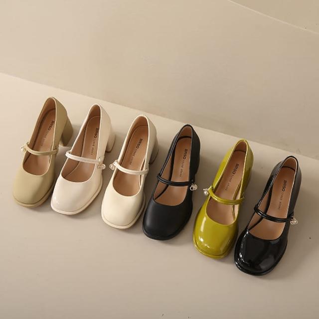 baibeauty 白鳥麗子優雅一字珍珠鑽飾粗跟包鞋瑪莉珍鞋